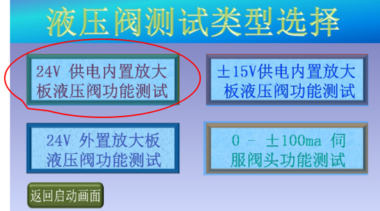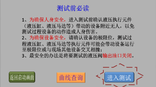 3、確認(rèn)現(xiàn)場人員和設(shè)備安全后,點擊“進(jìn)入測試”,進(jìn)入液壓閥測試類型選擇畫面;