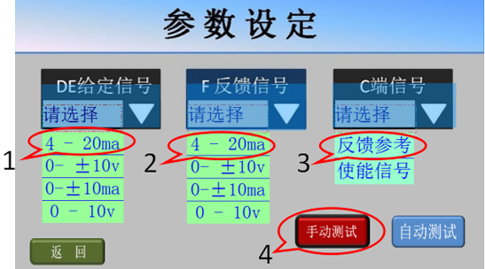 7、手動測試基本正常后,點擊屏幕左下方的返回鍵,返回參數(shù)設(shè)定畫面;