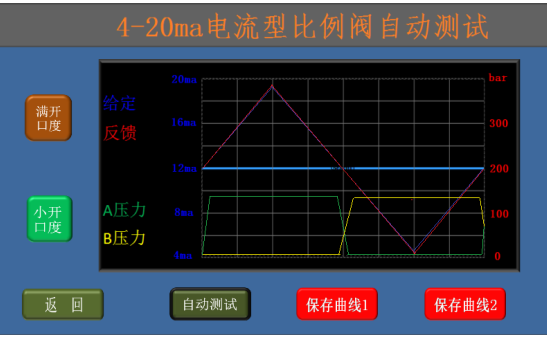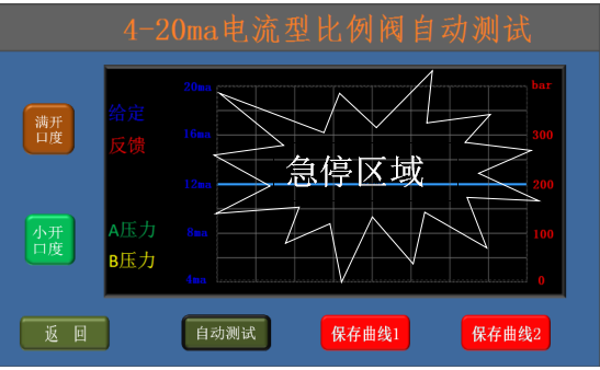 * 選擇小開口度后點擊“自動測試”可使比例閥從0開口度逐漸增加到+20%開口度,再逐漸減少到-20%,然后逐漸增加到0開口度;