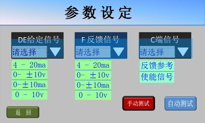 7、手動(dòng)測(cè)試基本正常后,點(diǎn)擊屏幕左下方的返回鍵,返回參數(shù)設(shè)定畫面;